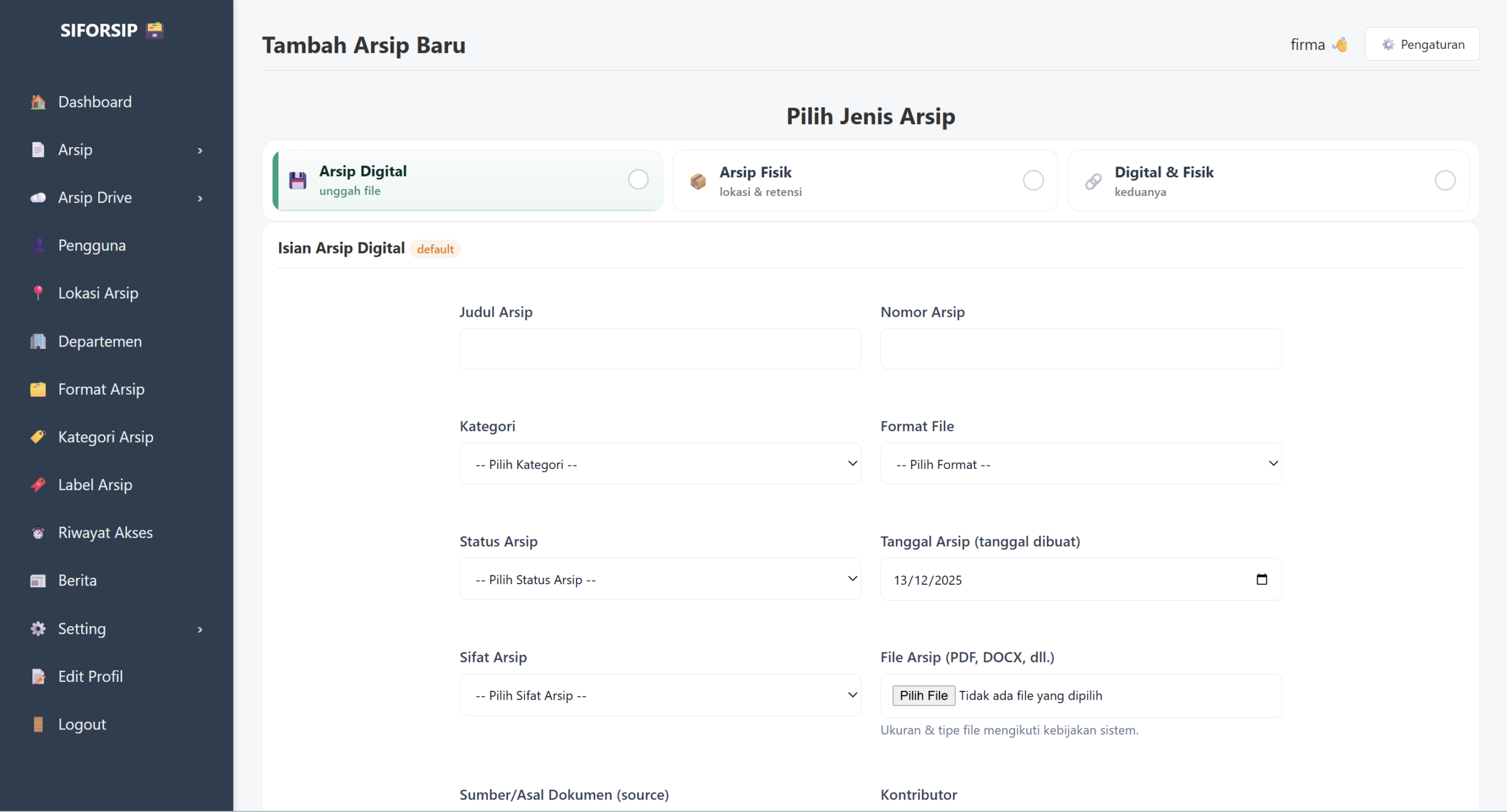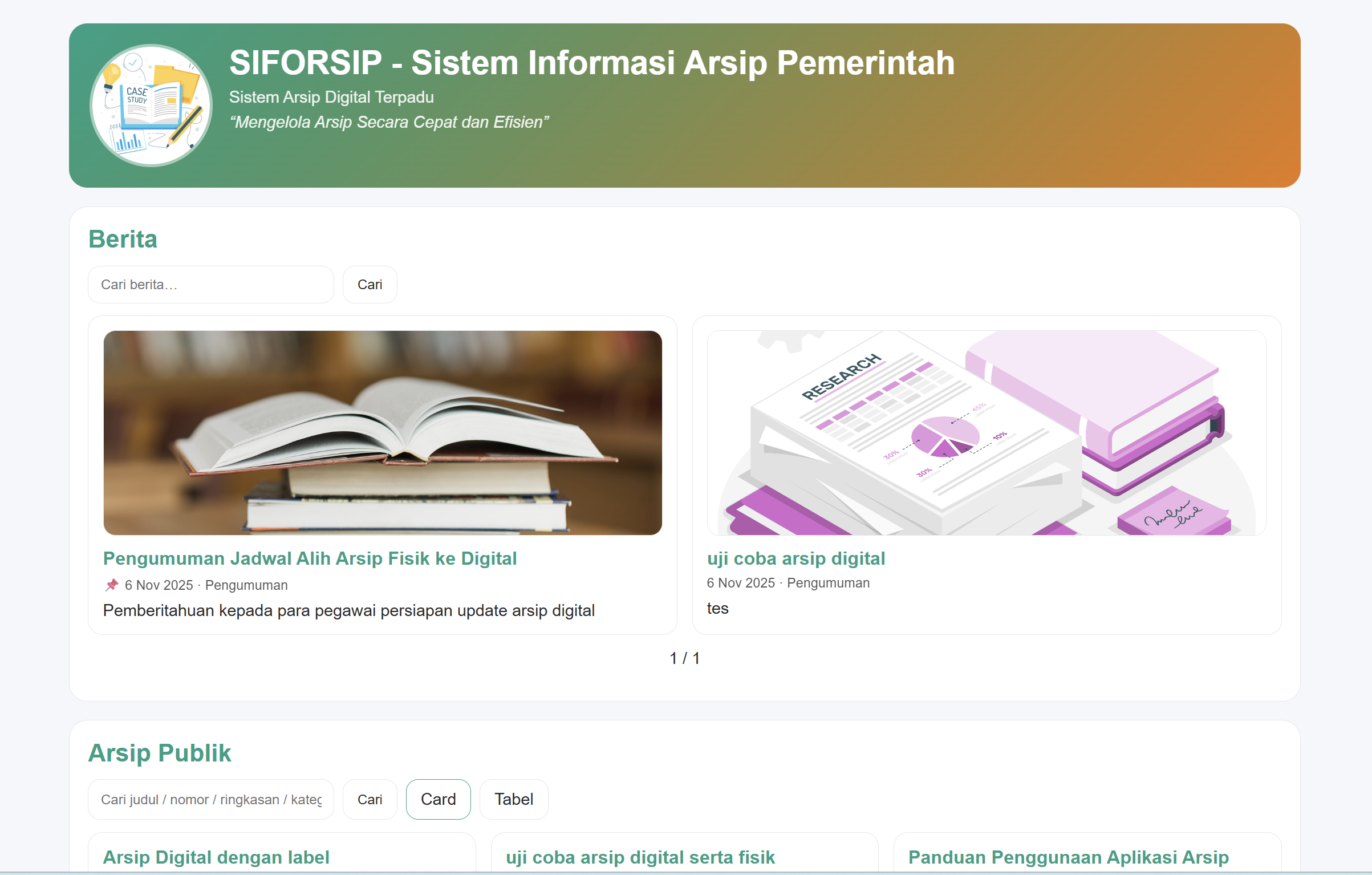 Siforsip (Sistem Informasi Arsip) adalah aplikasi open source yang bebas digunakan untuk membantu pengelolaan arsip lembaga maupun individu. Sistem ini dirancang dengan tampilan yang dapat disesuaikan dengan instansi.